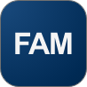 Aponte o leitor de QR Code do seu aparelho para as imagens abaixo para fazer o download do FAM.